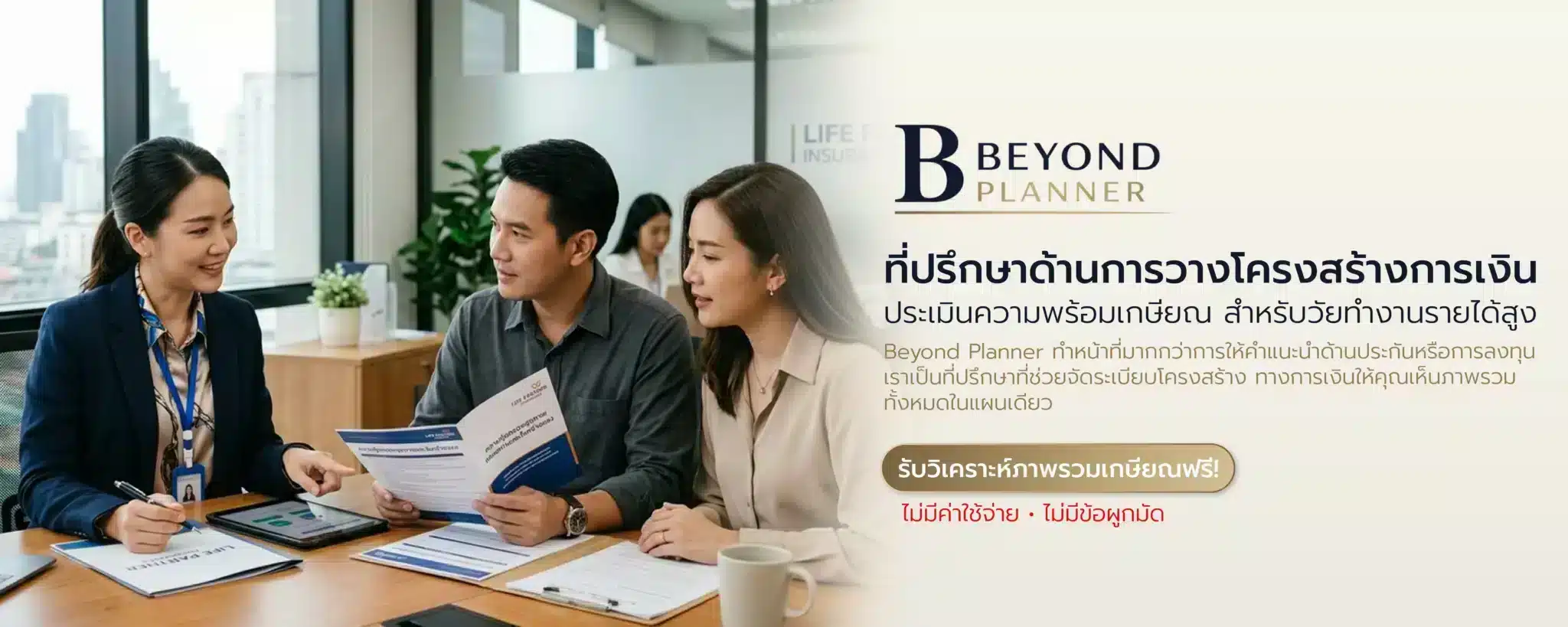 Beyond Planner เป็นที่ปรึกษาด้านการวางโครงสร้างการเงิน สำหรับผู้มีรายได้ระดับกลางถึงสูง ที่ต้องการความชัดเจนในการเติบโตทางการเงิน การเกษียณ และความมั่นคงในระยะยาว